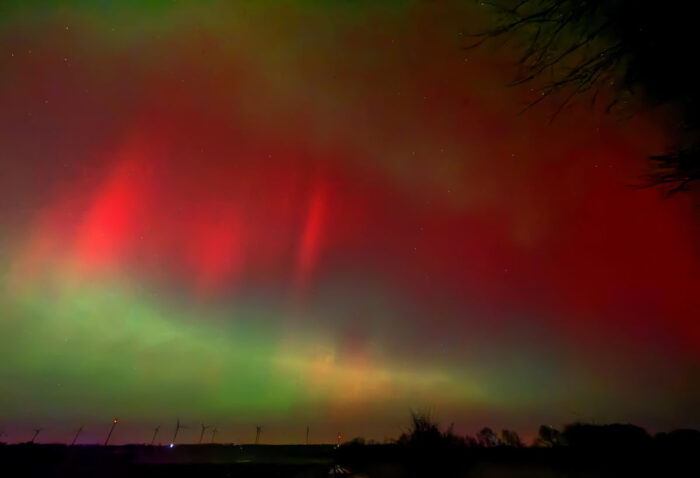 Am 19. Januar waren die Vorhersagen für Polarlichter wieder sehr überzeugend. Ich habe kurz nach 22:00 Uhr aus der Haustür geschaut und mit dem Smartphone im Nachtmodus aus freier Hand ein paar Bilder aufgenommen, um zu beurteilen, ob sich das Losfahren in eine dunkle Gegend lohnt: Der ganze Nordhimmel war auf den Bildern grün!