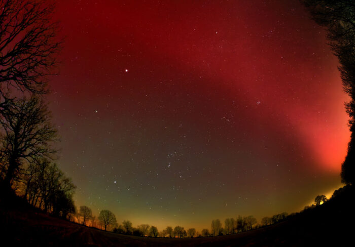 Schließlich drehte ich die Kamera nach von der Nordausrichtung entgegensetzt nach Süden, um den prächtigen Sternenhimmel, das Sternbild Orion und den hellen Planeten Jupiter aufzunehmen. Zu meiner Überraschung gab es selbst in dieser Ausrichtung noch Polarlichter, speziell aus dem Westen kommend.